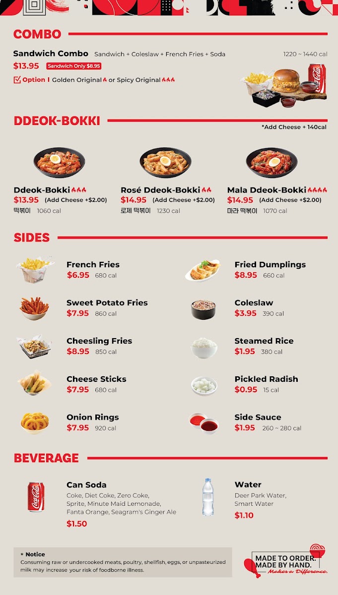 A platter take on the classic sandwich—4 crispy boneless chicken, Texas toast, plus your choice of one sauce (Galbi Mayo or Hot Mayo) and one side (Coleslaw, Fried Pickles, or Fries)